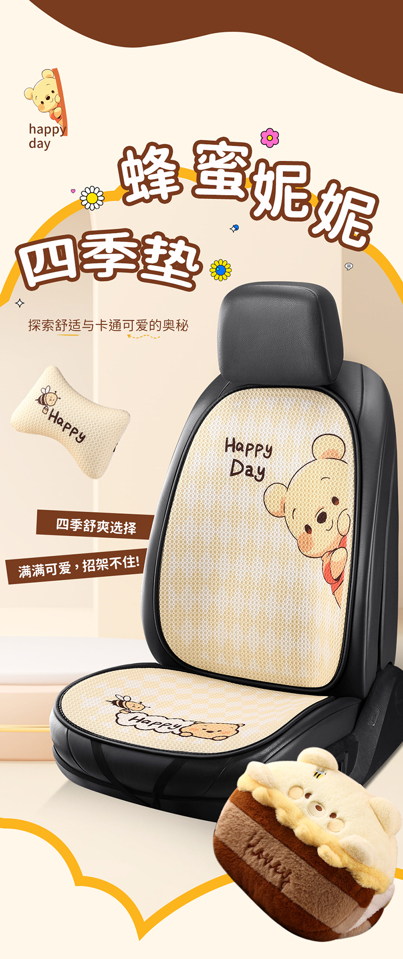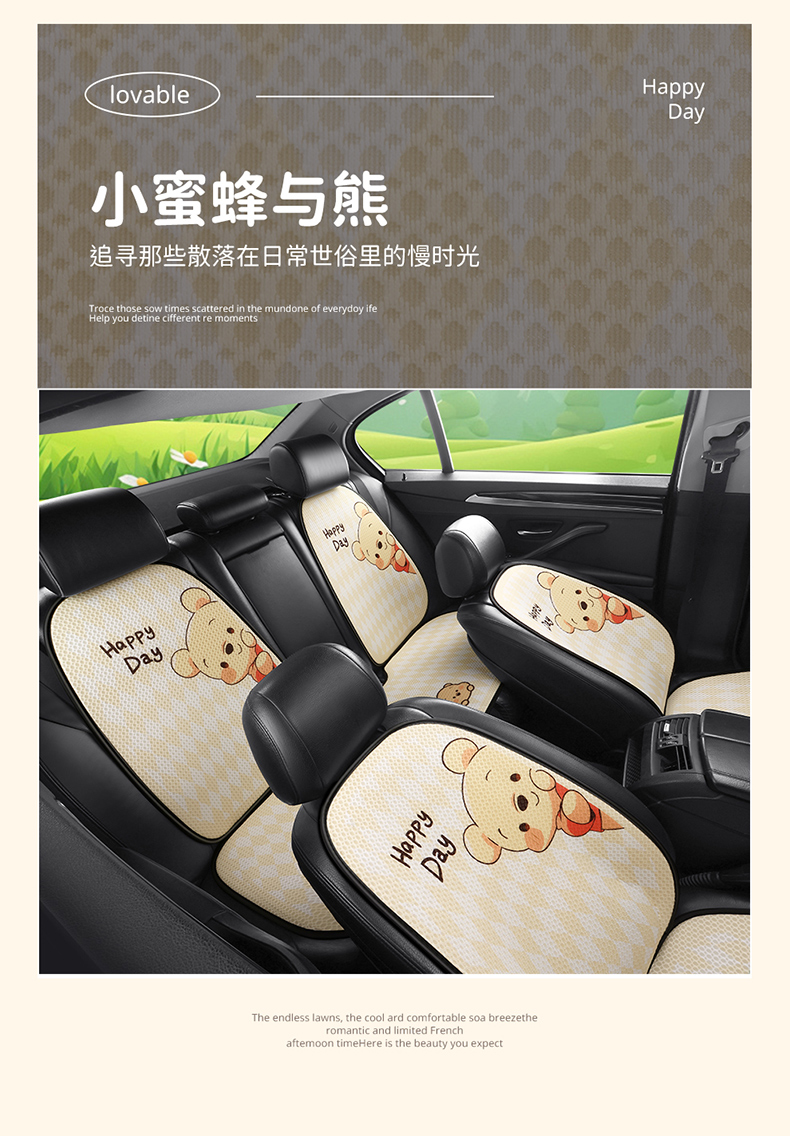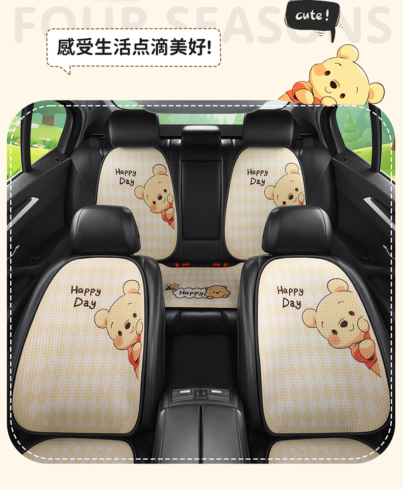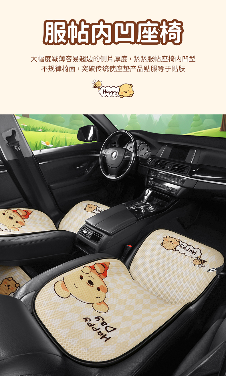 汽车坐垫四季通用座椅套单片防滑可爱小熊女神三件套卡通半包座垫