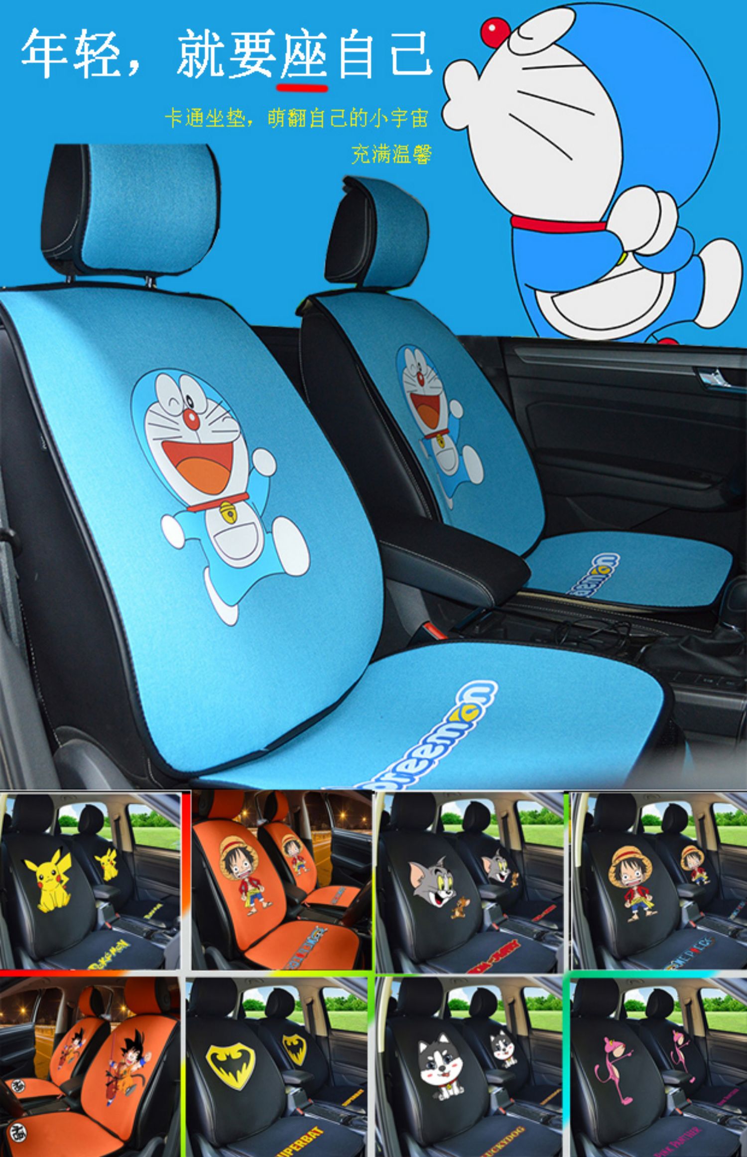 潮牌哆啦A梦车坐垫套半包卡通ins网红四季亚麻皮卡丘路飞汽车座垫
