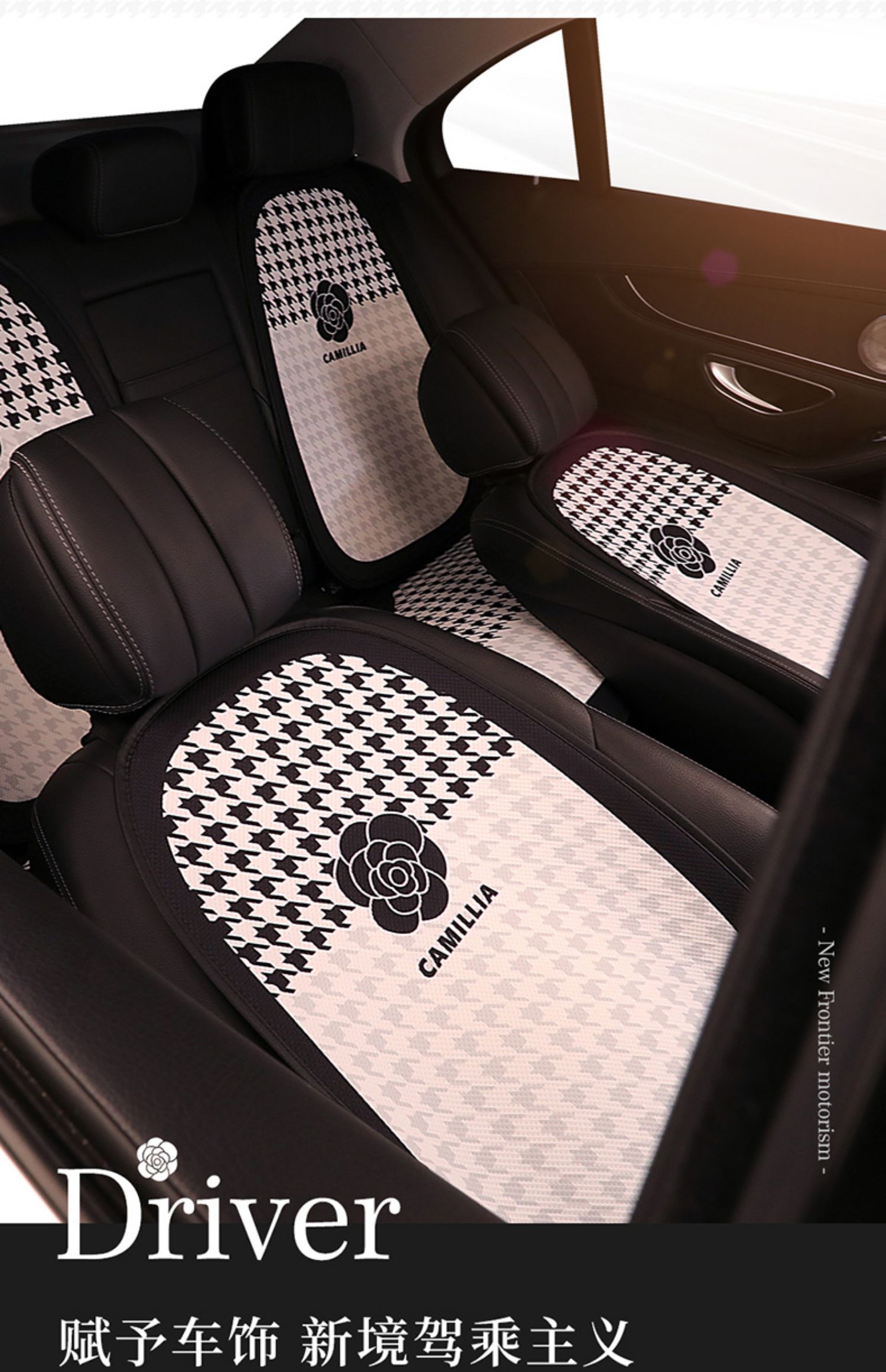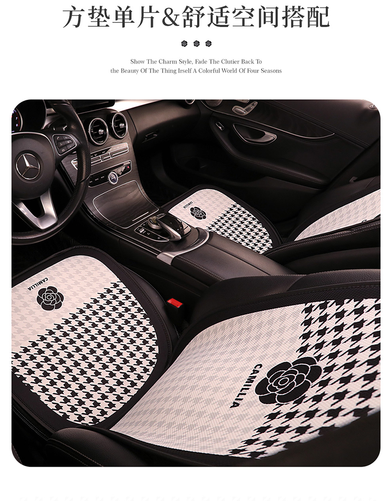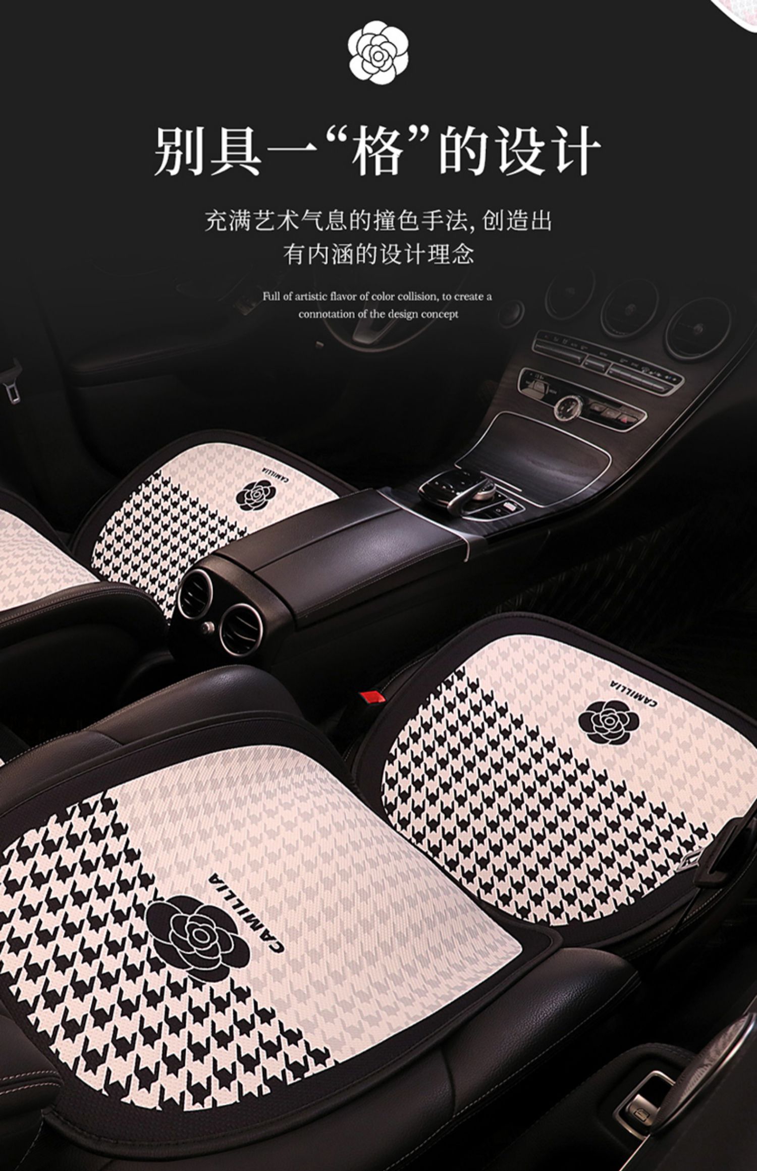 新款汽车坐垫夏季座椅套四季通用网红山茶花半包座垫单片女神车垫