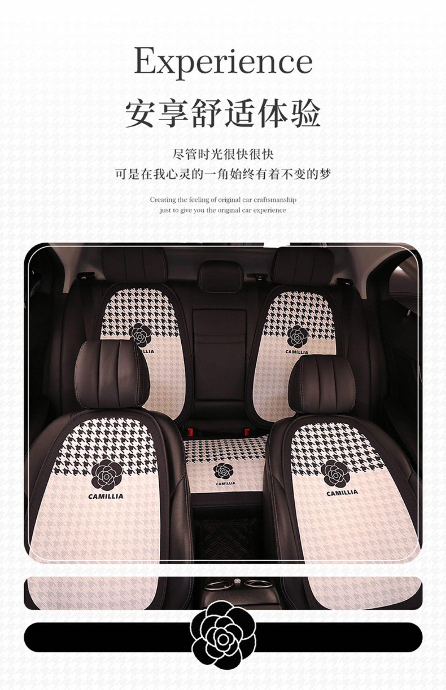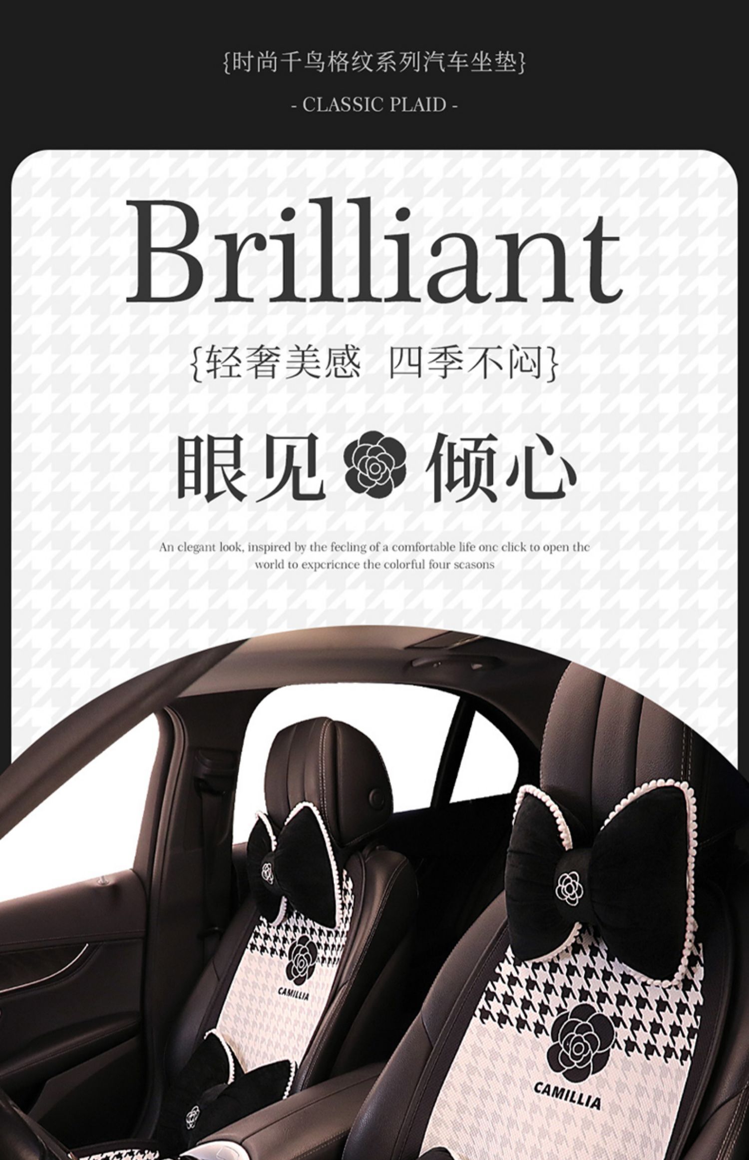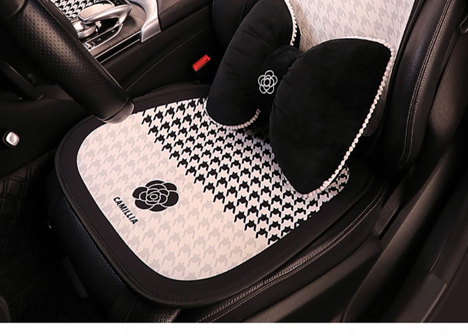 新款汽车坐垫夏季座椅套四季通用网红山茶花半包座垫单片女神车垫