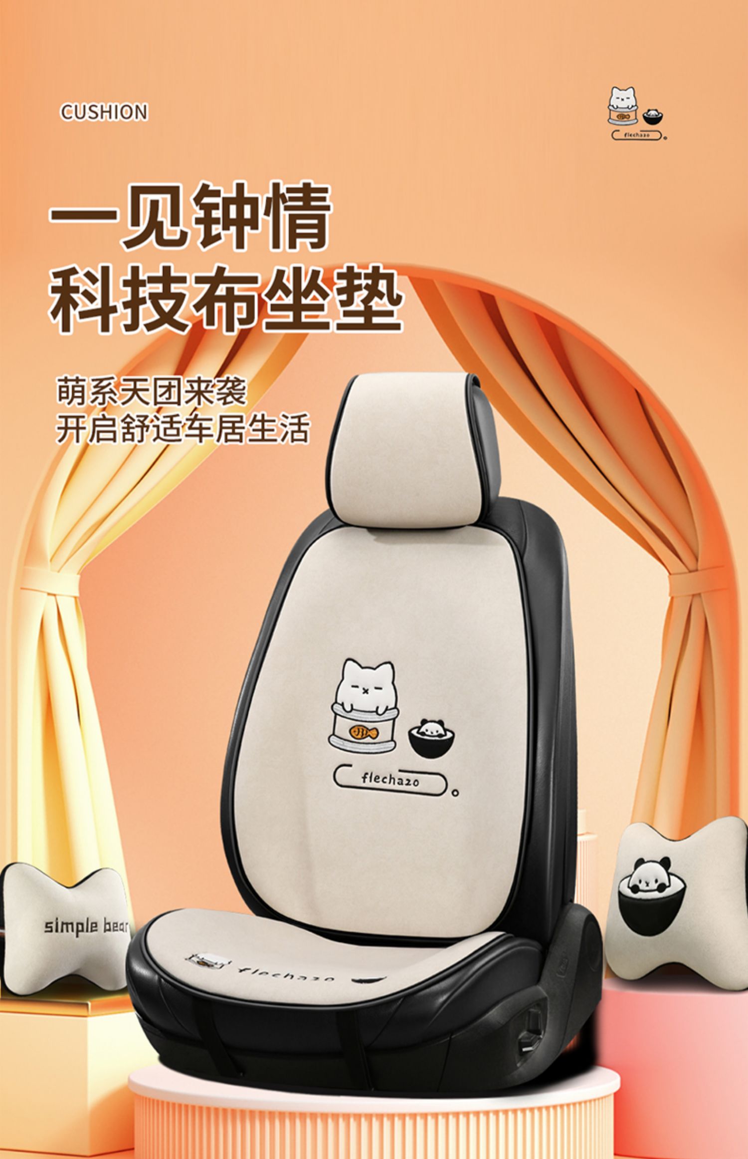 汽车坐垫卡通四季通用可爱座椅垫车内半包屁垫简约车垫后排座垫