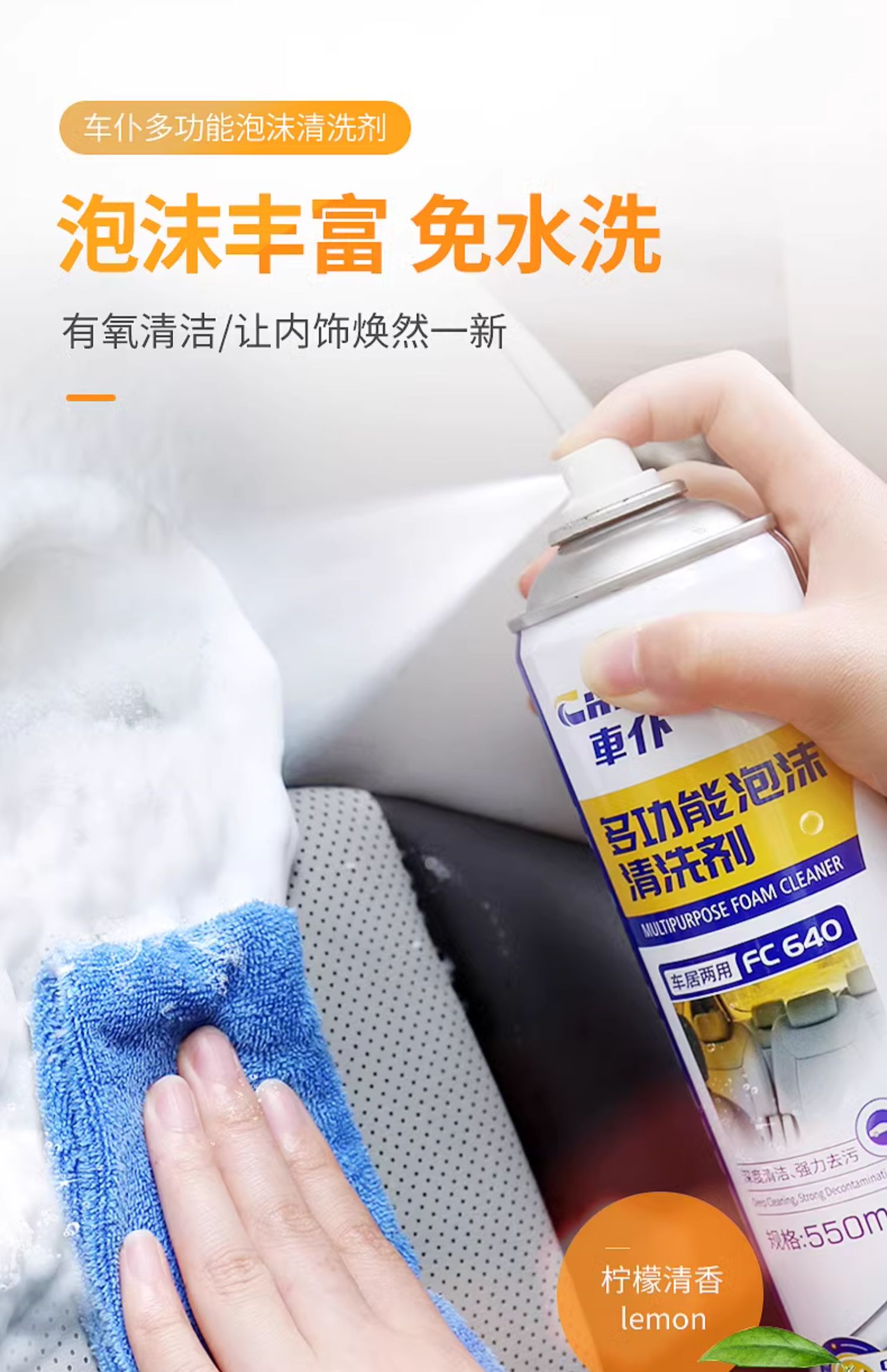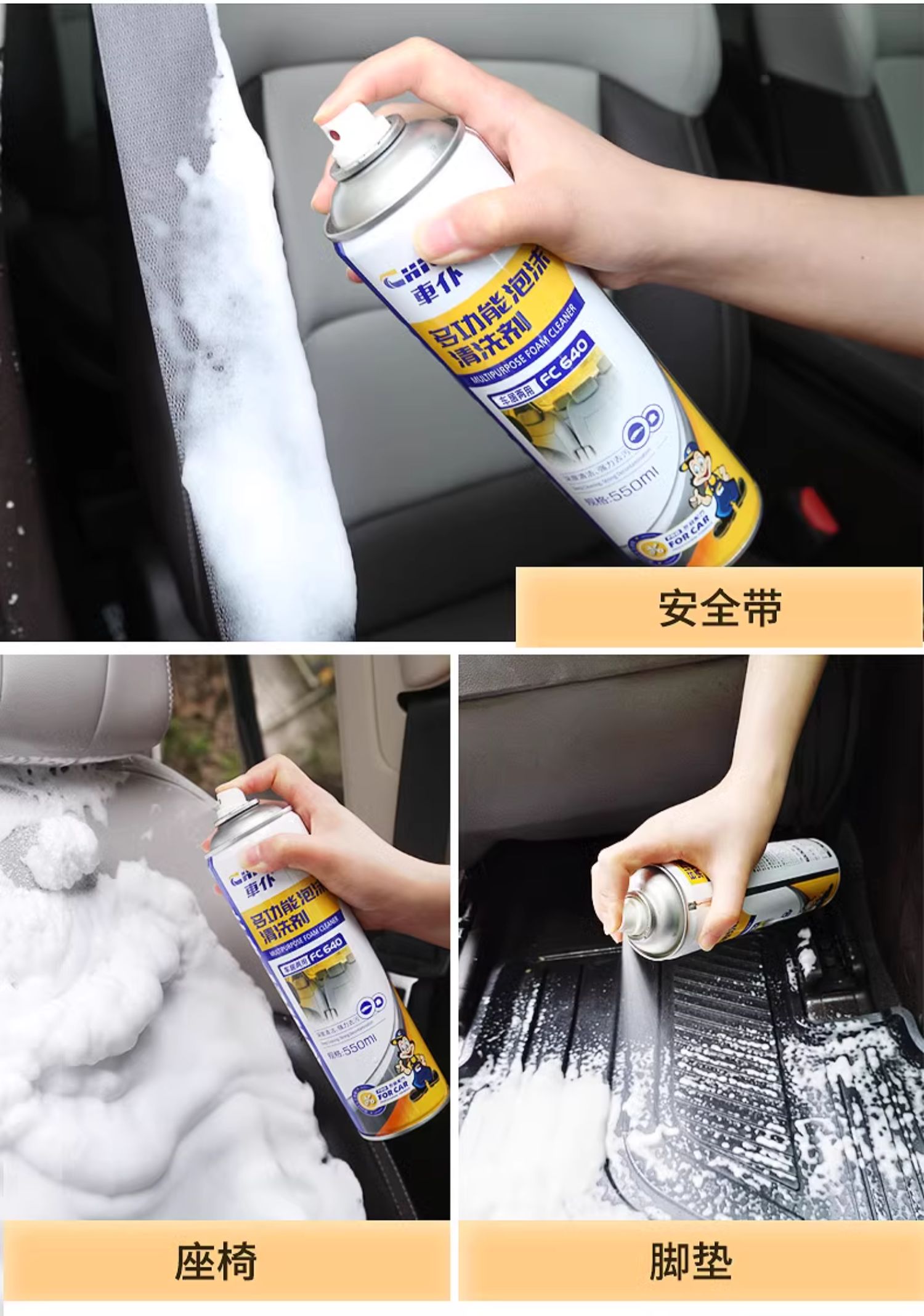3瓶车仆多功能泡沫清洗剂汽车内饰清洗剂车内清洁强力油污去除剂
