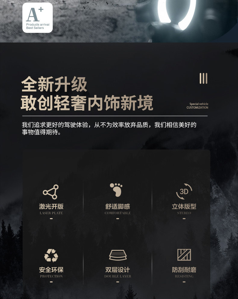 别克专用【黑色真皮+黑色纳米绒-双层】