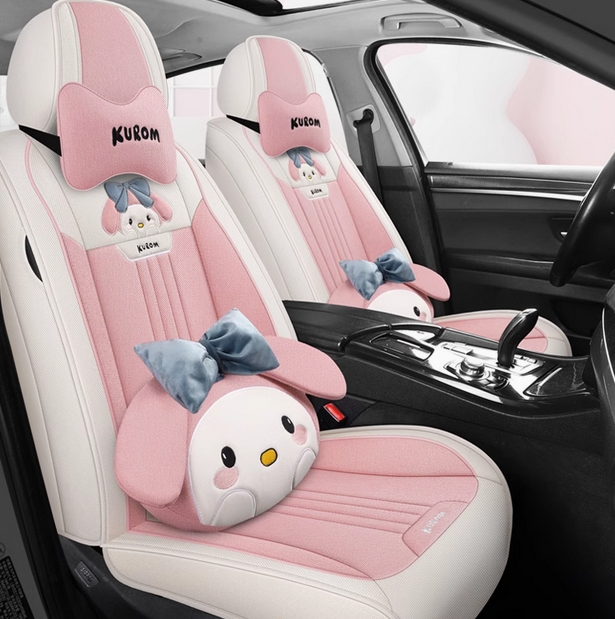 - 汽车坐垫四季通用全包亚麻奥迪A3大众高尔夫飞度缤越卡通座椅套女