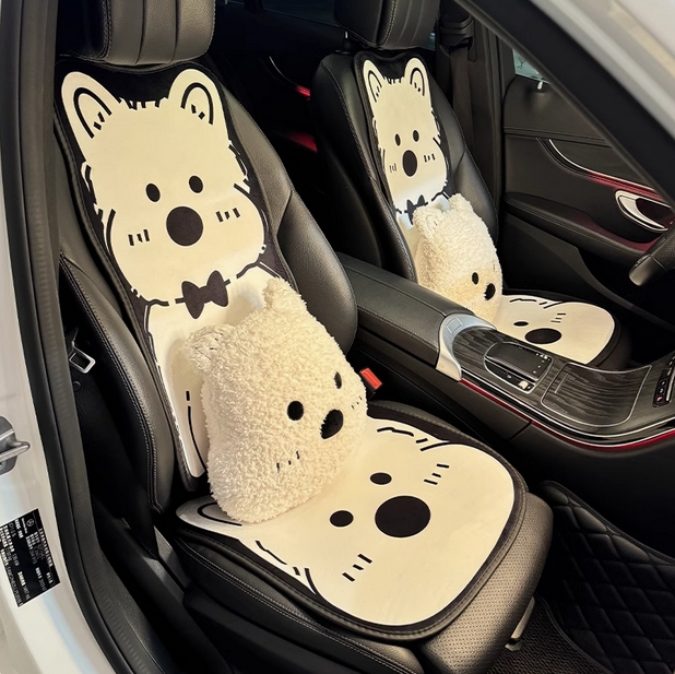 - 汽车坐垫四季通用座椅套单片防滑可爱小熊女神三件套卡通半包座垫