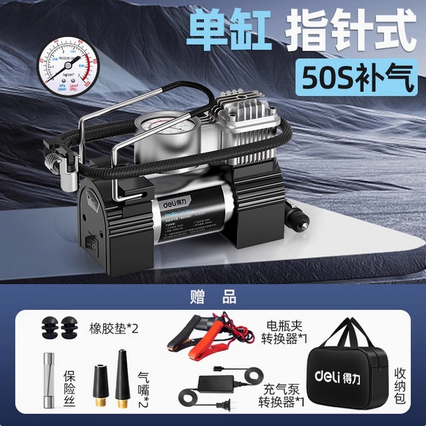 - 得力车载充气泵汽车用双缸便携式小轿车高压大功率轮胎自动打气泵