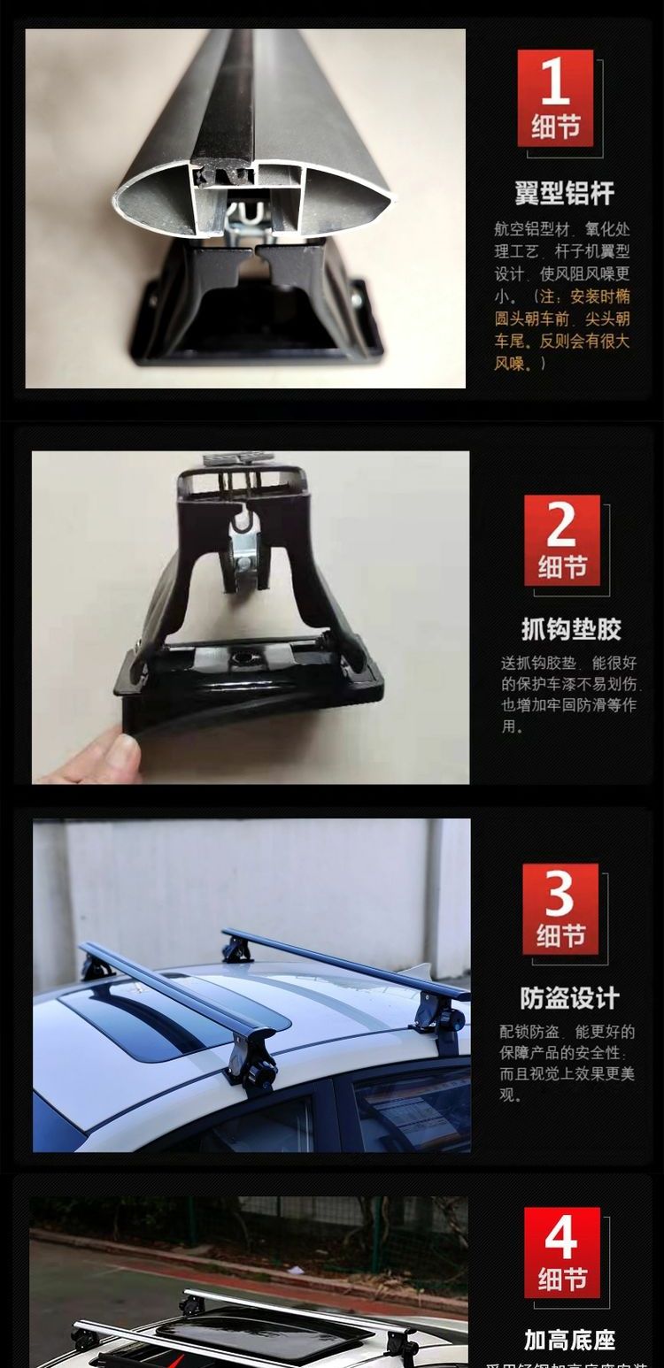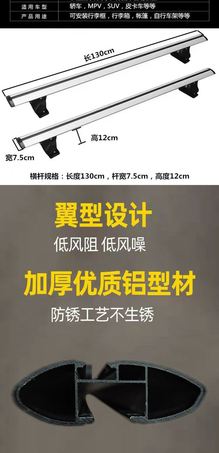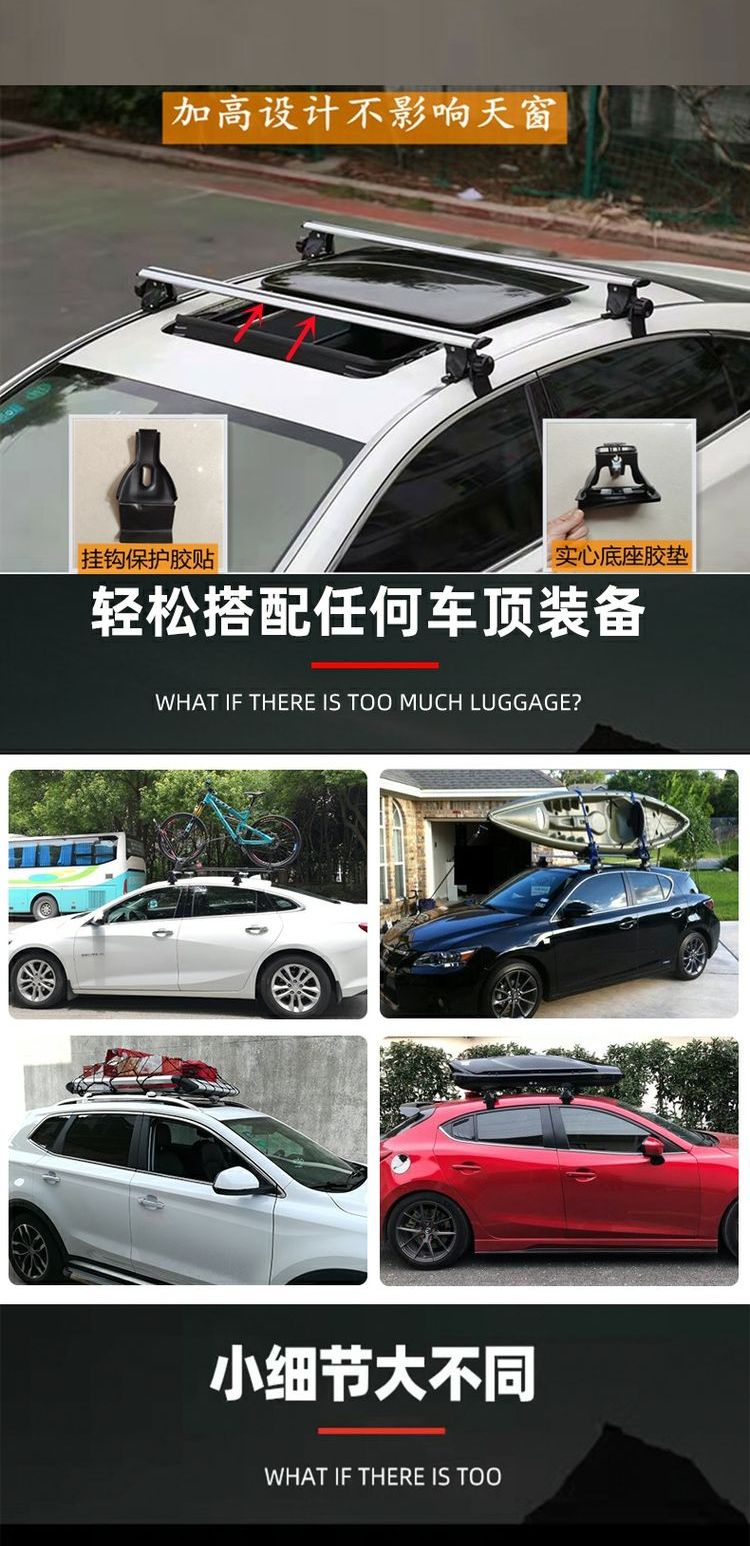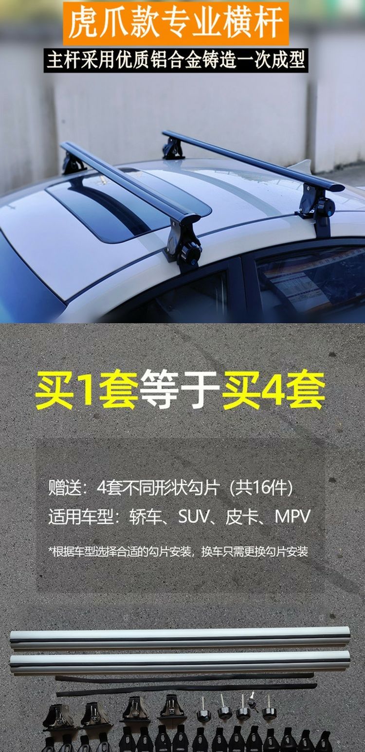 虎爪通用行李架横杆轿车皮卡车SUV铝合金车顶架改装载重帐篷箱架