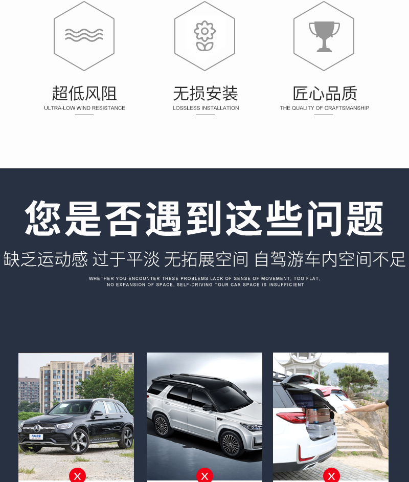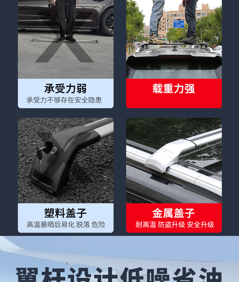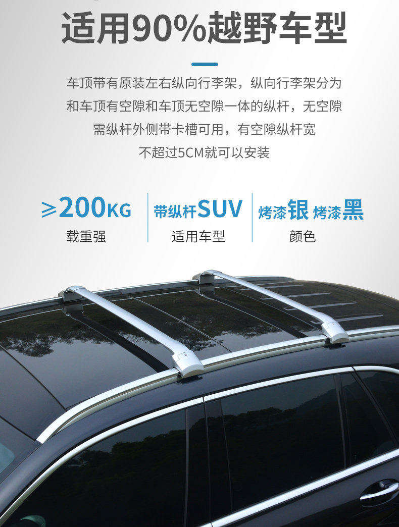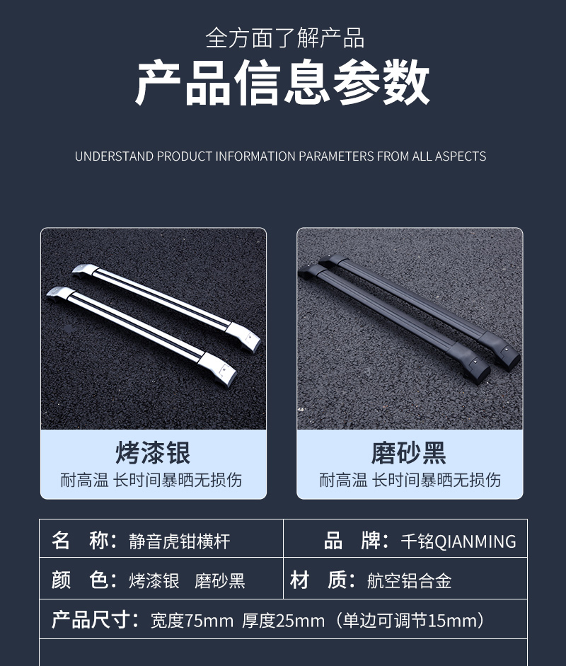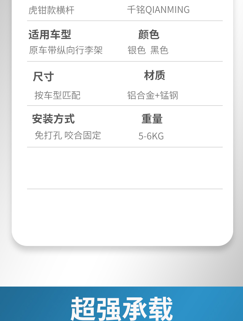 千铭加厚全铝合金车顶横杆行李架超低虎钳车载横杠架SUV承重力强