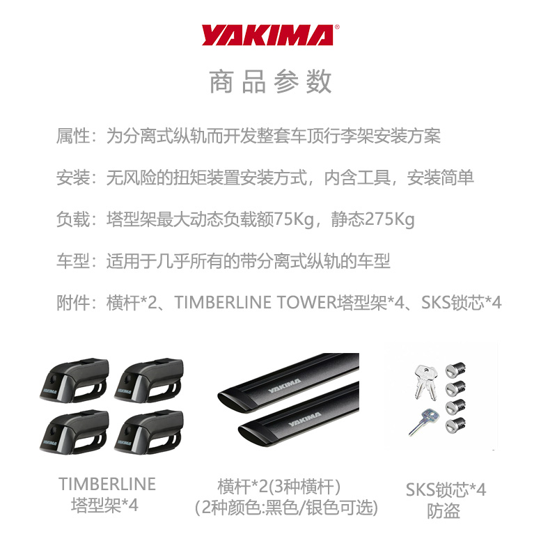YAKIMA车顶行李架横杆SUV坦克300途观L森林人塞纳途昂GLE越野改装