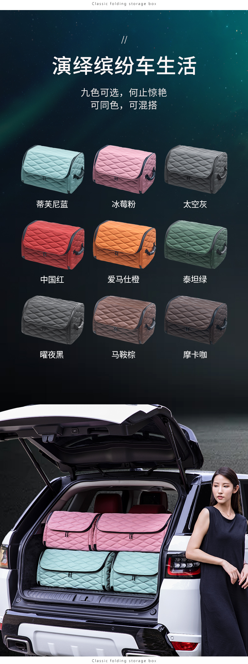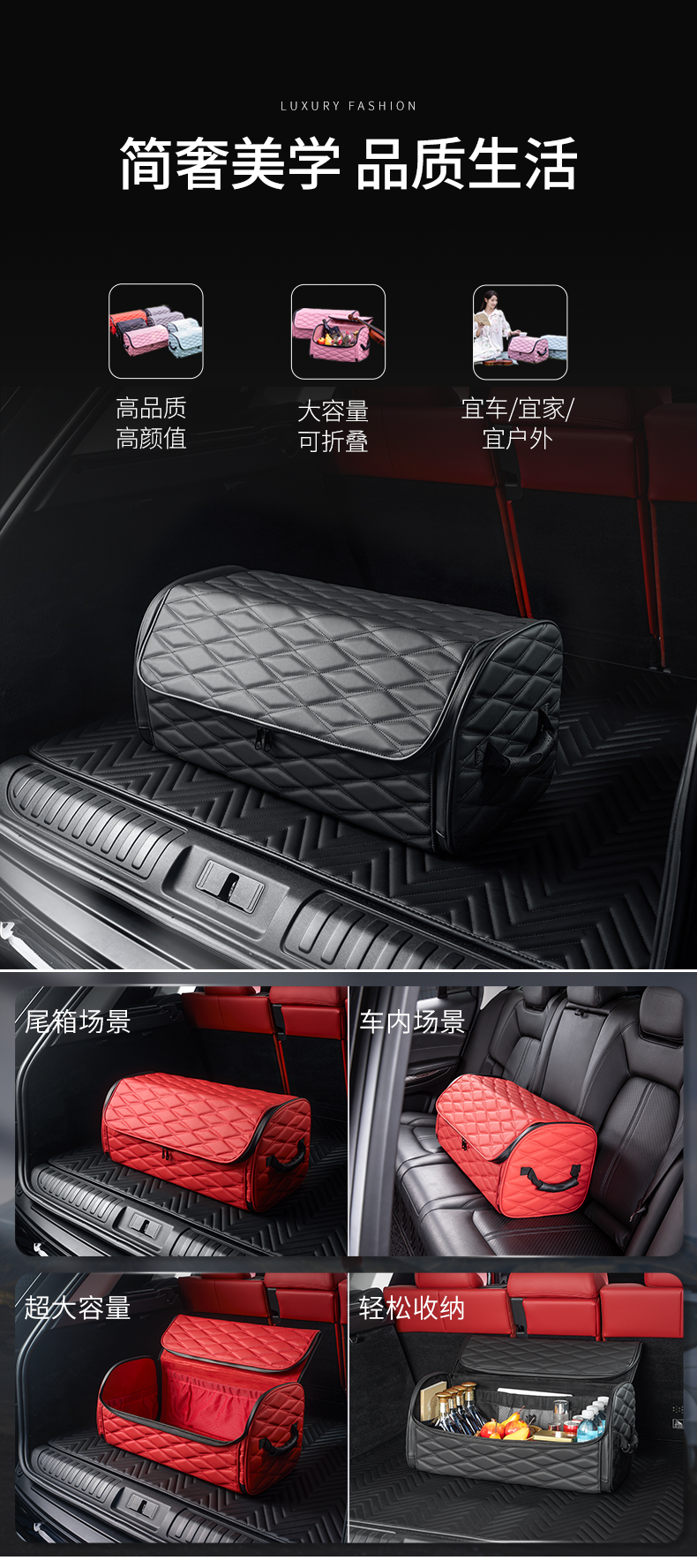 可折叠皮革汽车车尾收纳箱后备箱储物箱车内车载置物箱整理箱