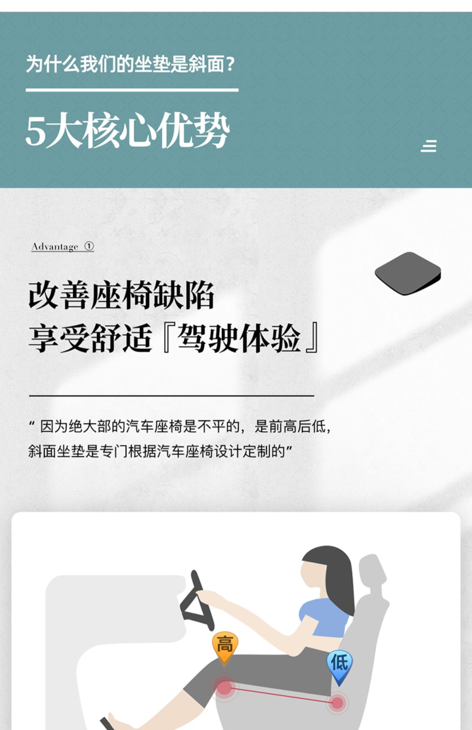 汽车增高坐垫 斜面专用学车驾照女座垫 主驾驶座椅加厚屁屁垫加高