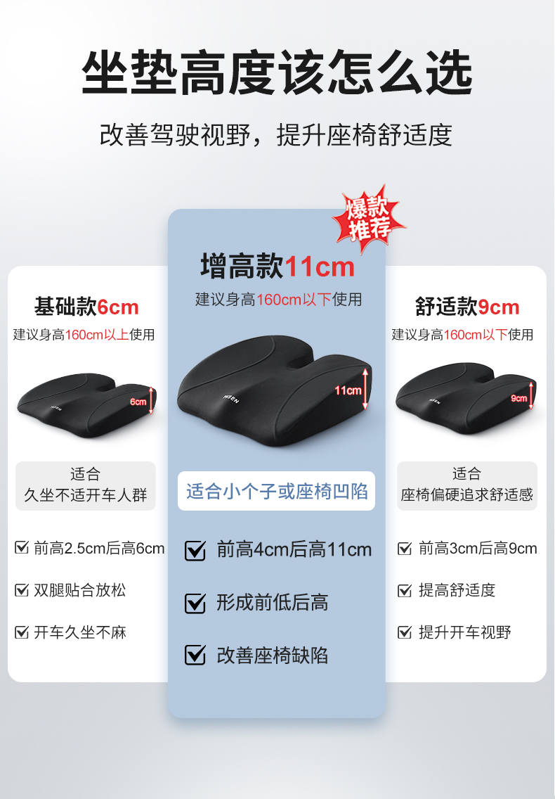 汽车坐垫四季通用主副驾驶加厚坐垫记忆棉科目二增高垫腰靠垫屁垫