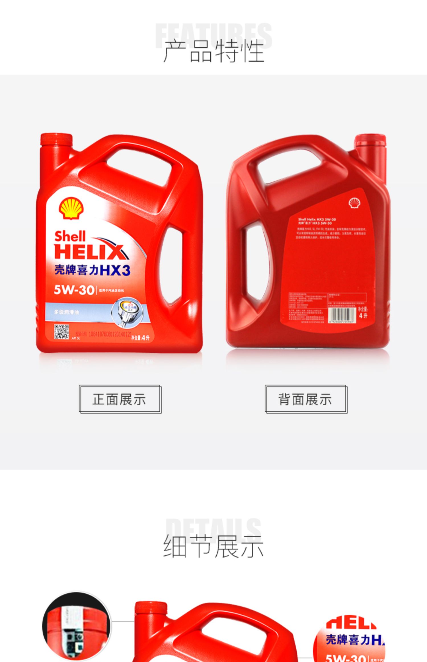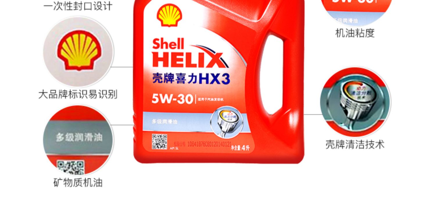 壳牌喜力HX3 5W-30 4L API SN 红壳 多级润滑油 发动机油天猫养车