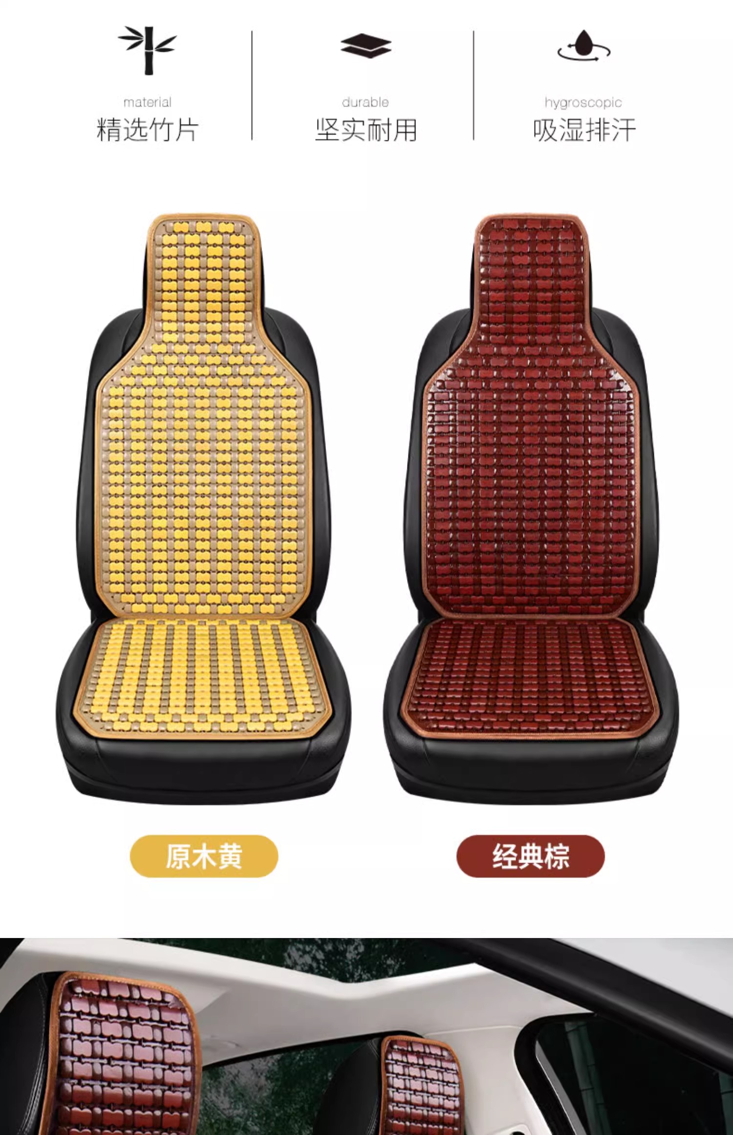 咖啡色【竹片腰靠+竹片方垫】前排单座